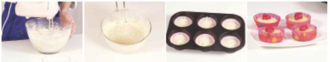 1.取一玻璃碗,倒入鸡蛋、细砂糖,用电动搅拌器搅匀,加入黄油、盐、泡打粉、香草粉、低筋面粉,搅匀。
