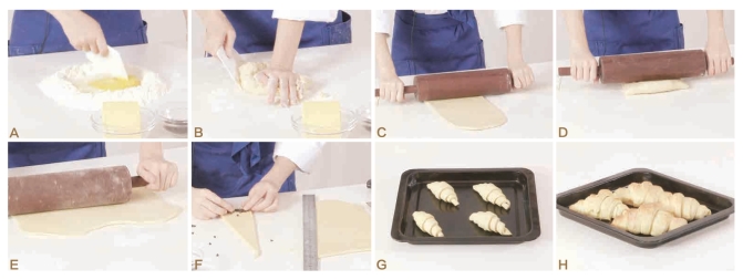 ◎可颂类面包的烘烤非常重要,最好是先高温定型,再用小火将内部烘烤定型,这样成品更酥。