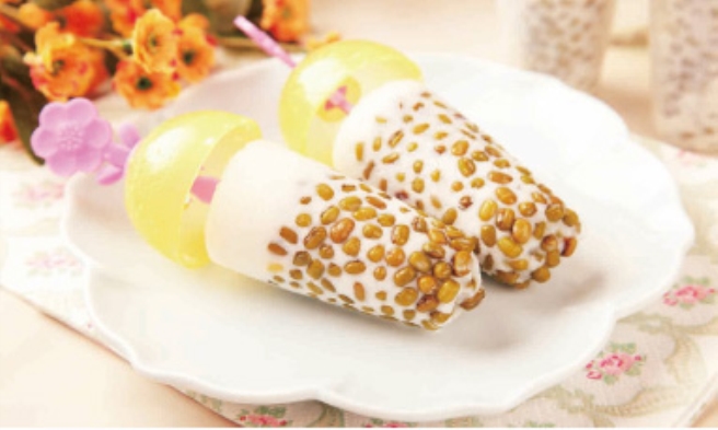 5.插入冰棒棍,放入冰箱冷冻6小时至成形。6.取出冻好的冰棒盒,拔出冰棒即可食用。