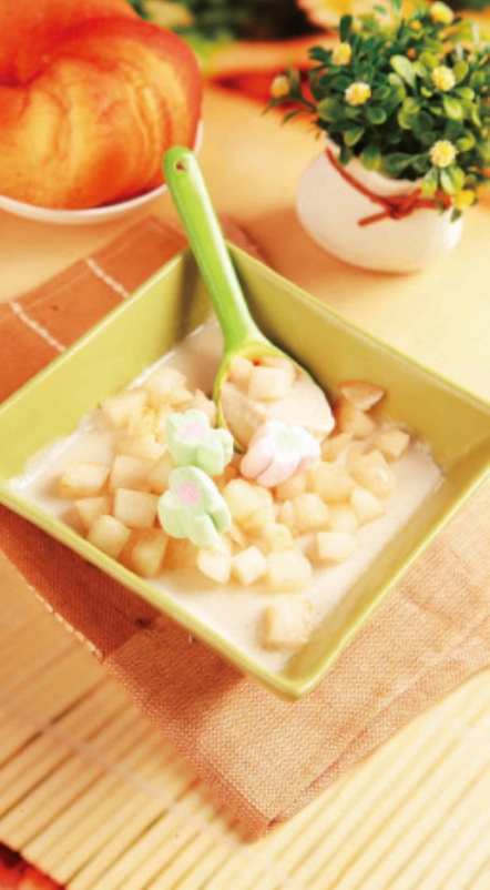 1.将洗净的梨去皮,去核,切小丁块,装盘备用。