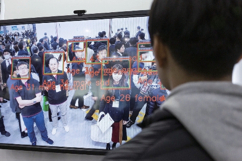 “人脸识别”是根据人的面部特征,进行身份识别的一种生物识别技术,也被称为人像识别、相貌识别、面孔识别、面部识别等。一个典型的人脸识别系统通常包含人脸检测、人脸对齐、人脸特征提取和人脸分类四个部分。首先,从摄像头所捕捉到的复杂画面,需要剔除大量的环境信息将人脸从中识别并标记出来,如图中的矩形方框所示。其次,捕捉到的人脸通常不会像证件照那样“标准”,有的可能低着头、有的可能看着远方、有的可能正侧着头,需要对捕捉到的人脸进行对齐,也就是需要将捕捉到的人脸图框进行姿态校正,调整为一张张竖直的“证件照”,以方便提取人脸特征。再次,就是从“证件照”中捕捉到人脸特征。简单来说,人脸特征提取过程就是将捕捉的人脸图像转换为计算机可以直接处理的数据格式,实质就是将人脸图像数量化,以方便使用深度学习技术自动从这些数据中提取人脸图像隐藏的特征,如其中的眼耳鼻舌唇的几何关系,从而获得人脸图像的特征描述。最后,将获取到的人脸特征,送入分类系统中进行分类或者对比识别。