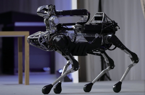 2017年,波士顿动力公司首次对外展示了SpotMini机器狗,这个纯电动机器人在充满电的情况下可以使用90分钟,最大载重量为14千克。SpotMini机器狗的体积小,其长度为0.84米,与普通的中大型犬差不多。2018年5月,波士顿动力公司对SpotMini机器狗在实用性上做了探索,改进后的机器狗更加智能,全新的导航系统让它在散步的过程中可以进行“记忆”,之后就可以在散步过的地方进行自主巡逻。