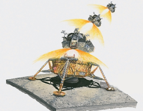 登月舱在降落到月球上面后,宇航员完成任务准备返回时,登月舱会分离为两部分——上升器和着陆器。上升器抛弃着陆器点火起飞,当然这个过程着陆器也会对上升器起到一定的推进作用,上升器前往与在月球轨道等待的控制服务舱并进行对接。对接完成后,宇航员们进入控制舱,然后将控制服务舱与上升器再次分离,留下上升器独自在月球轨道上“等死”,而控制服务舱在点火后,带着航天英雄们回家。