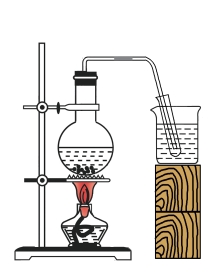 用弯曲的直角玻璃管、单孔胶塞、橡皮管、圆底烧瓶、试管、烧杯、酒精灯等按图1-7所示连接好装置。