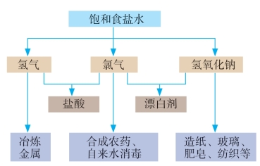 氢氧化钠、氯气和氢气都是重要的化工原料,可用于制取多种化工产品,这样就形成了一个重要的化学工业分支——氯碱工业,氯碱工业的产品涉及国计民生的多个方面。