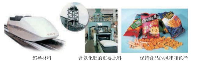 大量的氮气在工业上主要用于合成氨、制硝酸等,它们是制造氮肥、炸药的原料。氮气可用作焊接金属的保护气;氮气或氮、氩的混合气体可用来填充灯泡,以防止钨丝的氧化和减慢钨丝的挥发,使灯泡经久耐用;充氮可以保存粮食和水果等,在高氮低氧的环境下,使害虫缺氧死亡,同时能使种子、果实处于休眠状态,减缓重新代谢,从而延长粮食、水果等农副产品的保存和保鲜时间。