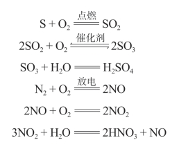 酸雨主要是由上升的大气污染物NO、SO2等与大气中的水分在光照或其他条件下反应形成的。