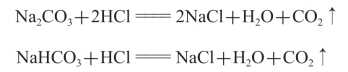 碳酸钠和碳酸氢钠都能与盐酸反应放出CO2气体,但碳酸氢钠与盐酸反应的程度比碳酸钠剧烈得多。反应的化学方程式为