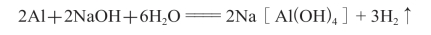 与大多数金属不同的是,铝能与强碱氢氧化钠反应,放出氢气,同时生成四羟基合铝酸钠。
