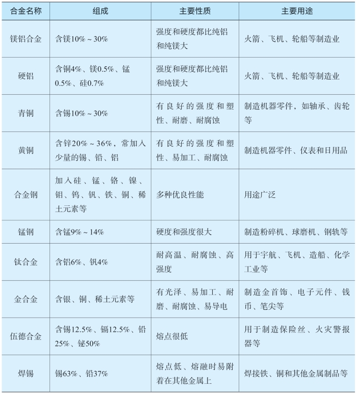 表4-6 常见合金的组成、性质和用途