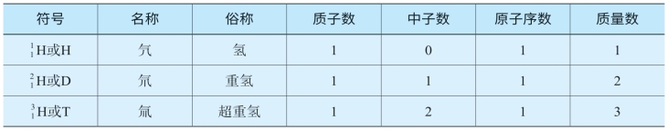 从上表可以看出,氢元素的三种原子都含有一个质子,但中子数各不相同。我们将这种具有相同质子数,而中子数不同的同种元素的不同原子互称为同位素。在自然界的各种化合物中,各种同位素在同一元素中所占的比例几乎不发生变化。