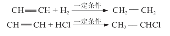 乙炔除了与溴能发生加成反应外,在一定条件下还可以与氢气、氯化氢等发生加成反应。