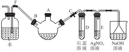 2.先向三颈烧瓶中加入少量铁屑,关闭F,打开C,将少量液溴倒入少量苯中充分混匀,将混合物从三颈烧瓶A口加入,塞住A口,观察现象。写出三颈烧瓶中发生反应的化学方程式。