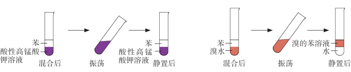图6-23 苯滴入酸性高锰酸钾溶液和溴水中