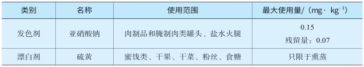 表8-4 两种食品添加剂的使用范围和最大使用量