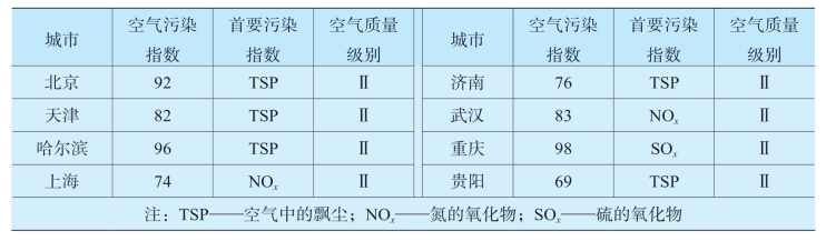 空气质量日报是通过新闻媒体向社会发布的环境信息,它可以及时准确地反映空气质量状况,增强人们对环境的关注,促进人们对环境保护工作的理解和支持,提高全民的环境意识,促进人们生活质量的提高。表9-1是某日的城市空气质量日报,你了解报告中各项内容的含义吗?