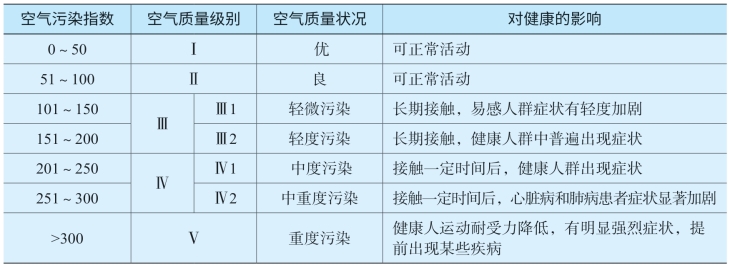 表9-2 我国空气污染指数分级标准