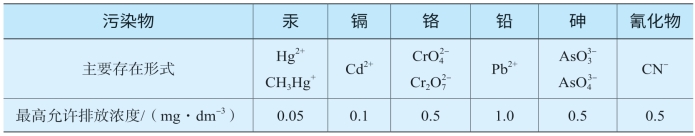 表9-4 我国工业废水中几种污染物的最高允许排放浓度