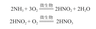 蛋白质在水中的分解过程是:蛋白质→氨基酸→氨。NH3在微生物作用下,可进一步被氧化成HNO2,进而氧化成HNO3,以硝酸盐的形式成为水生植物的养料,其过程为