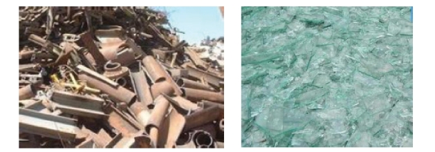 图9-28 金属(左)和玻璃(右)是两种常见的可回收利用材料