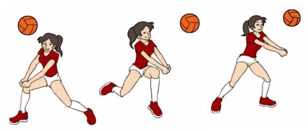 垫球按动作方法可分为正面双手垫球、跨步垫球、体侧垫球、挡球等。现主要介绍正面双手垫球、体侧垫球和滚翻垫球三种垫球技术。