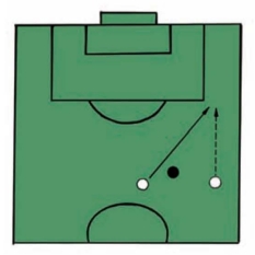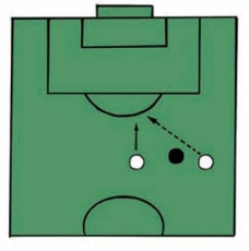 运用回传反切二过一配合时,要有一定的纵深距离。特别是在对方防守密集的罚球区前中路地区,要估计到守门员出击的情况。