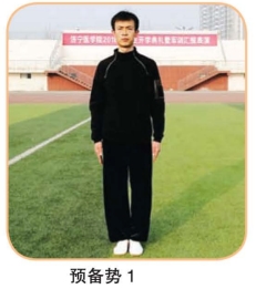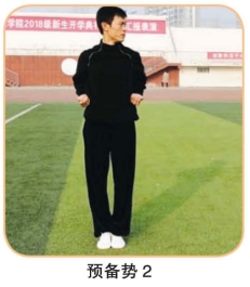 要点:挺胸、直腰,两肩后张,两拳紧贴腰侧。