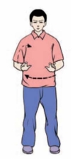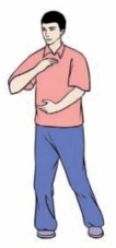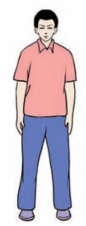 (1)两脚并拢,身体自然直立,头颈正直;两臂自然下垂,两手指尖轻贴大腿侧;眼向前平视(图3-3-1)。