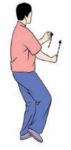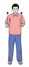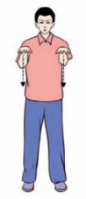 (3)两臂慢慢向前平举,两手高与肩平,与肩同宽,手心向下(图3-3-3)。