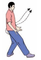 (3)两手臂左右划弧分开平举,肘部微屈,手心均向外;同时右腿屈膝提起.右脚向右前方慢慢蹬出;眼视右手(图3-3-113、3-3-114)。