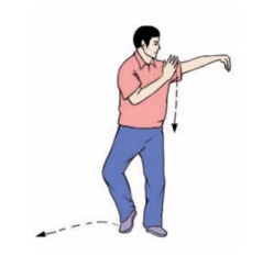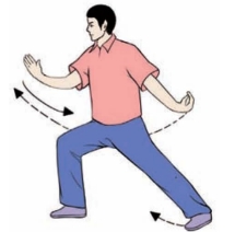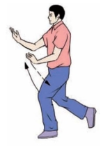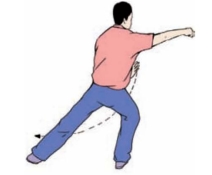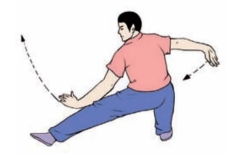 要点:右脚触地后必须稍微提起,然后再向下仆腿。其他均与“左下势独立”相同,唯左右相反。