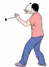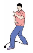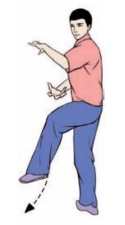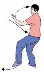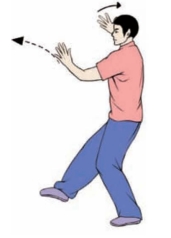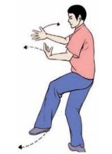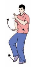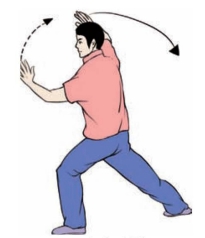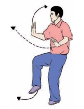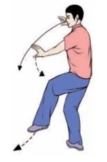 要点:身体要先向右转,再向左转。完成姿势,面向正西。上体不可太前伸。不要低头和臀部凸出。左腿要微屈。