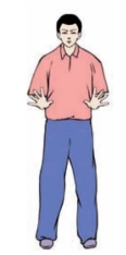要点:两手分开和合抱时,上体不要前俯。站起时,身体自然正直,头要微向上顶,下颏稍向后收:两臂环抱时须圆满舒适,沉肩垂肘。
