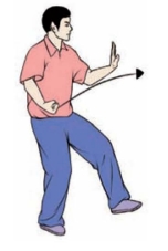 要点:身体后坐时,避免后仰、臀部凸出。两臂随身体回收时,肩、肘部略向外松开。不要直着抽回.两手推出宽度略窄于两肩距离。