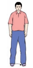 (2)两腿缓缓蹬直,同时两掌慢慢下落至大腿侧,然后重心右移收左脚成并步直立。眼视前方。