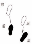 (1)进步(前滑步):左脚提起,向前进步,右脚迅速蹬地,跟进同样距离(图3-4-2)。