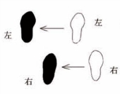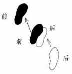 (6)内步:左脚前脚掌原地拧动或向左跨步,随即身体左偏,右脚向左前方迅速跟上一步,身体右转约90°。