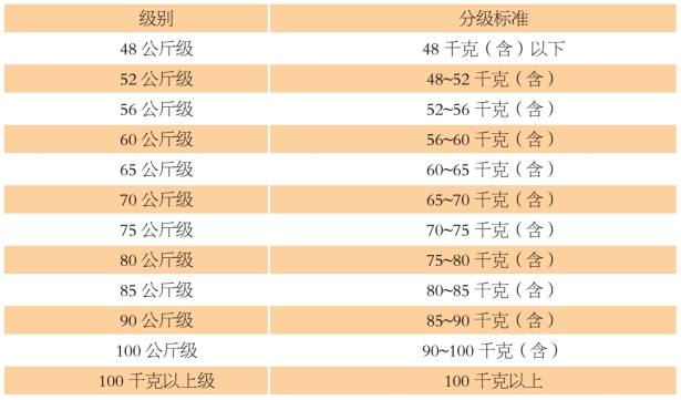 (2)抽签在第一次称量体重后进行,由比赛设定的最小级别开始。如该级别只有一人,则不能参加比赛。