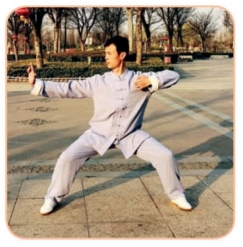 作用:本节动作主要是扩张胸部作用于上焦。呼气时,双手左右开弓尽力拉开,加大胸廓横径;呼气时,双手下落,然后向胸前合拢,吐尽残余的浊气;由于两肺的舒张与收缩,对心脏也起到了直接的挤压和按摩作用,加强了心肺功能。在马步过程中完成动作,腿部肌肉力量得到锻炼。