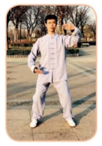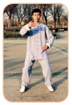 (2)左手沿原路线缓缓下落,还原至体侧。右手举按动作同左手,惟方向相反。(图4-1-7/4-1-8/4-1-9/4-1-10)。