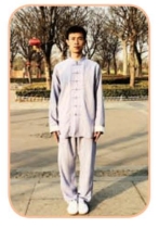 要点:脚跟上提时,百会上顶;脚跟着地时呼气咬牙,震脚用力不可过大,意念下引至涌泉,全身放松。