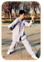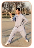 动作四:身体重心前移至右脚,左脚收回,右脚尖转正,成开立姿势;同时,两臂自然垂于体侧;目视前下方。