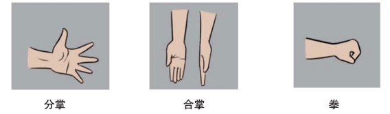 (1)分掌:五指用力分开,手腕保持一定的紧张程度。