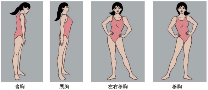 胸部动作由含胸、展胸和移胸等动作组成,如图5-1-9所示。