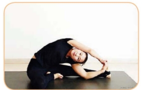 (1)呼气,身体在一个平面内向左移动侧弯,两侧腰部依然保持等长伸展