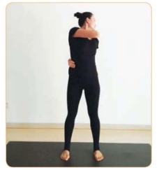(4)呼气将双手手背落于头顶正上方。