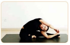 (2)右膝盖弯曲,右脚掌放在左大腿内侧。右膝盖平放。