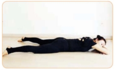 腹部着地躺下,双脚并拢。手臂放在头部上方,大臂贴耳。腿分开约半m,脚跟相对,手肘弯曲。右手掌放在左前臂,左手掌放在右前臂,额头或者下巴一侧脸放在小臂上放松。