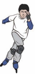 在滑行获得了一定的速度后,两脚平行稍靠近些,如向左转,则左脚略靠前,右脚靠后,重心落在两脚之间1/3处,前腿略弓,后腿直,身体重心压在左脚和右脚的左侧,利用惯性向左侧滑一较大的弧线;如向右转,动作相反。