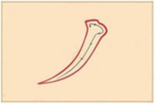 钩,笔画形状“如长空之新月”。与“戈”末端相似。古人又称为“戈法”。